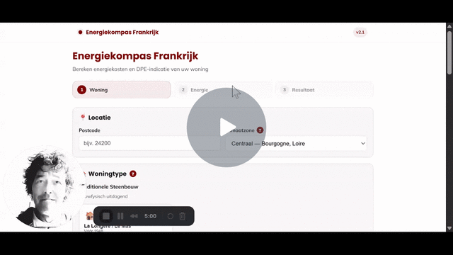 Wat kost het om een huis in Frankrijk te verwarmen? En welk DPE-label kun je verwachten? Met het Energiekompas op Infofrankrijk.com kun je een indicatieve analyse doen. De tool is alleen toegankelijk voor abonnees. Je rekent het zelf door op basis van bouwfysische principes.